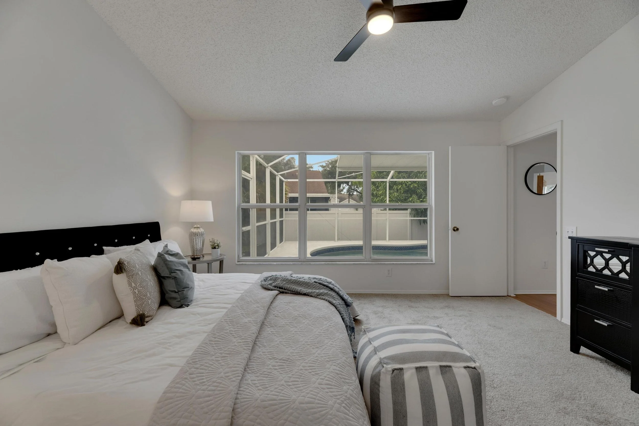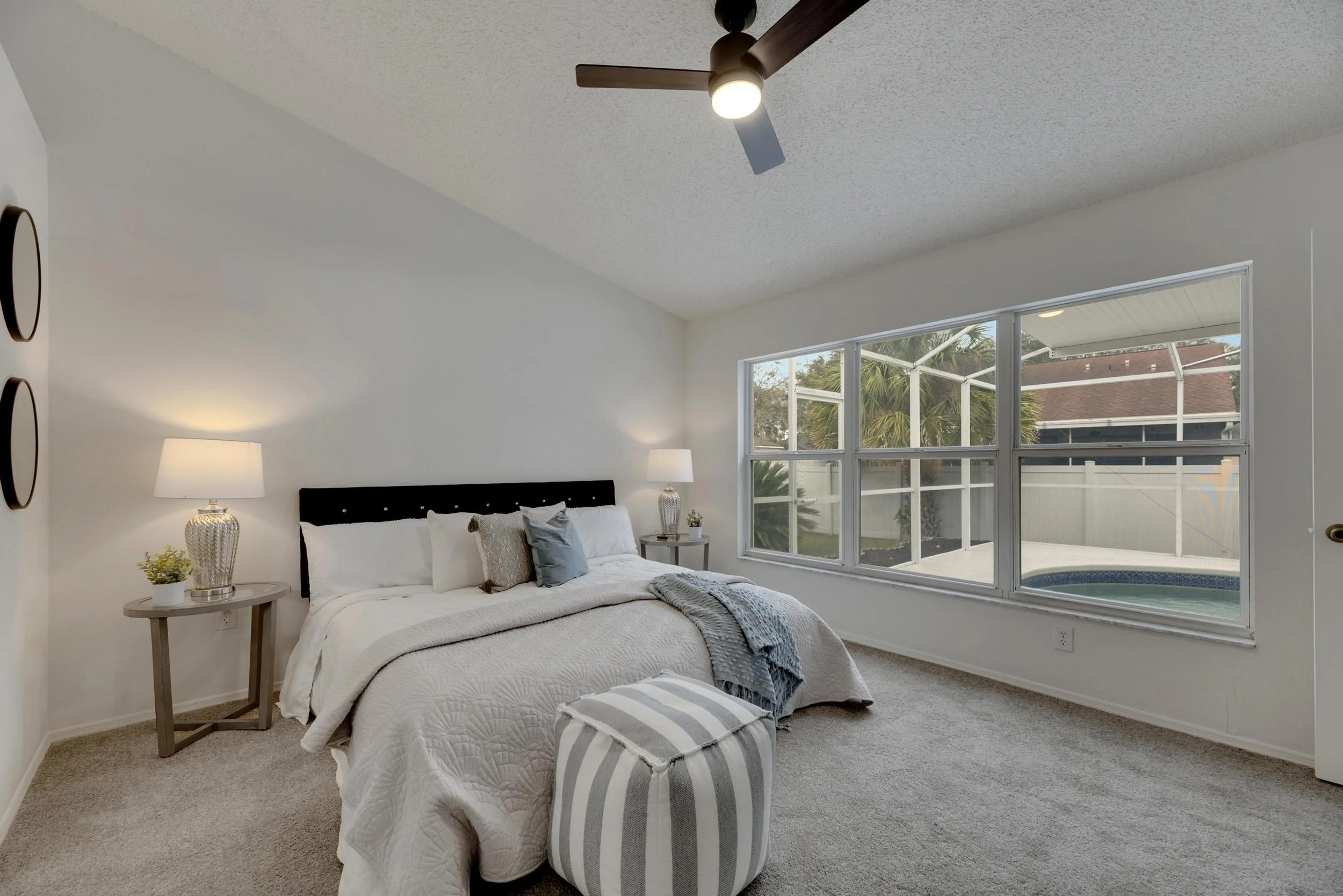 The outdoor space is equally impressive, featuring a sparkling pool that invites you to unwind and enjoy the Florida sunshine. Whether you’re hosting summer barbecues or simply lounging by the pool, this backyard oasis is perfect for both relaxation and entertainment.